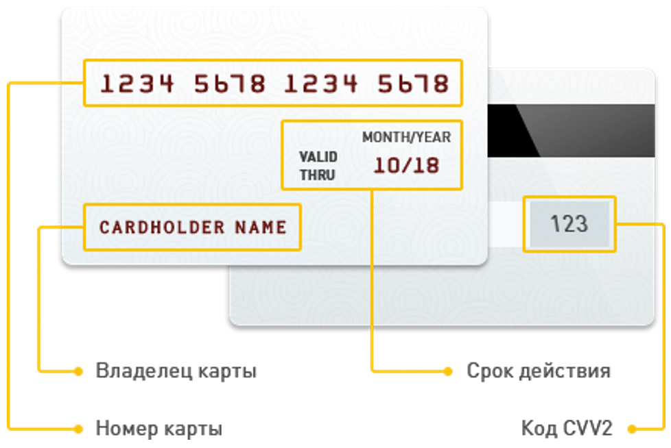 При оплате заказа банковской картой, обработка платежа происходит на авторизационной странице банка, где Вам необходимо ввести данные Вашей банковской карты: